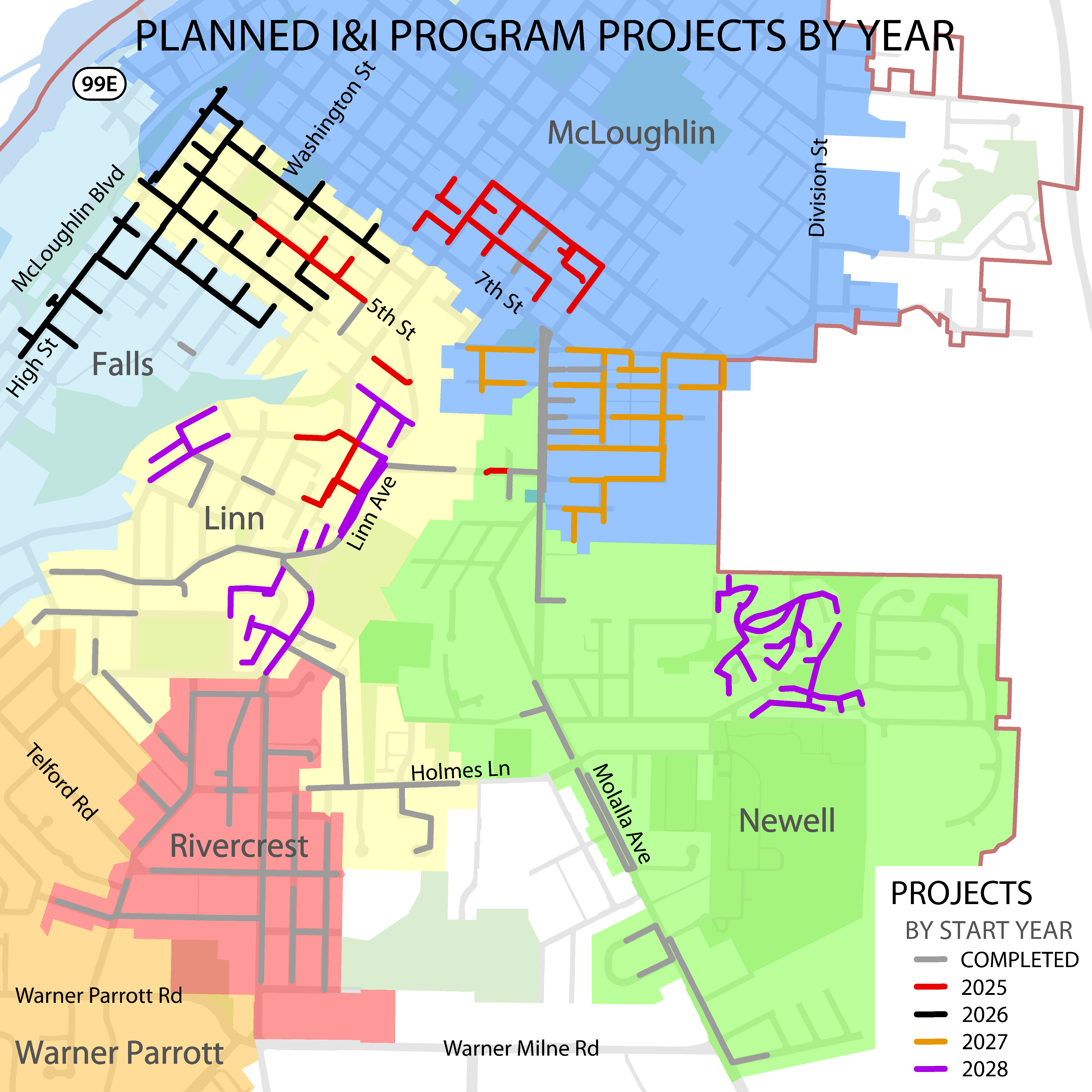- McLoughlin Basin Sanitary Sewer I & I Rehabilitation Project 1: Construction begins October 2025 and is expected to last through June 2026.